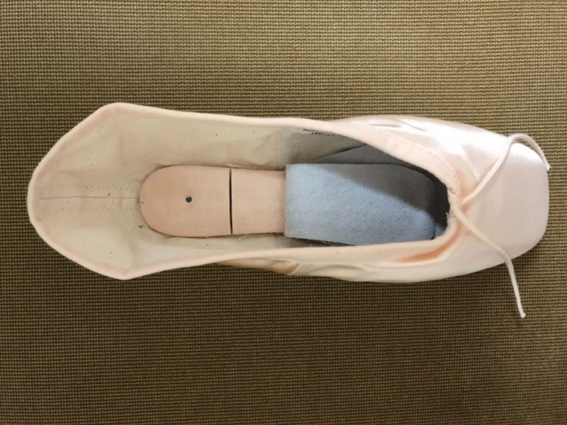 アクシオンはボックス周りの糊付けがしっかりされているポワントなので、足に馴染むようボックスに水をつけて、生地を柔らかくしてから履きます。