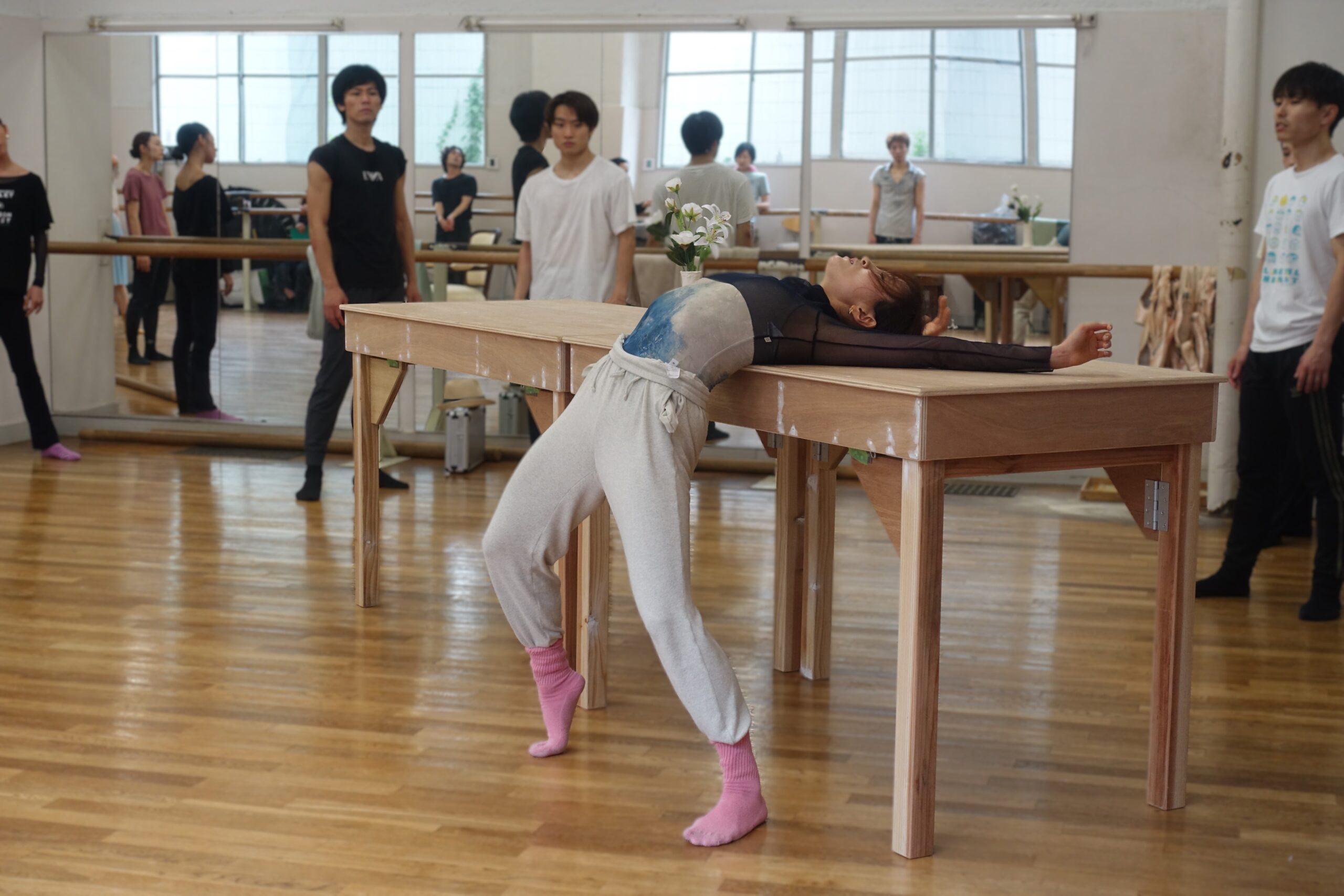 小山 そもそもは、貞松・浜田バレエ団での「囚われの国のアリス」を観に行ったとき、本番前の舞台上でのクラスを教えていらっしゃるのを拝見したのが、今回依頼することになったきっかけなんですよね。動きっていうものに対する考え方が見えるようなクラスだったので、こういう方にうちのダンサーたちも揺さぶってもらいたいって思ったし、自分自身もわくわくするような、それが動きだよっていうふうに思って。あのクラスを見たのはすごく楽しかったですね。